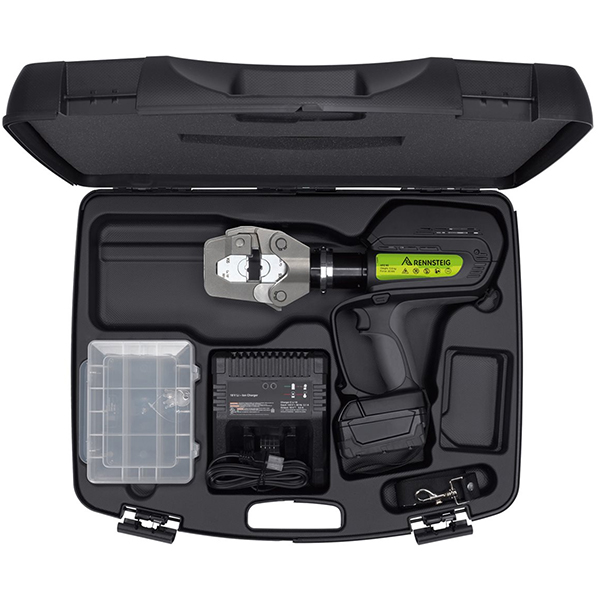 Máy ép cos RENNSTEIG APZ 80 nặng 5,6 kg gồm pin, được đóng trong hộp nhựa cứng kèm sạc và phụ kiện. Bộ khuôn ép sáu cạnh đi kèm tương thích với dòng HPZ 80.1, dùng được cho cả cos đồng và nhôm.